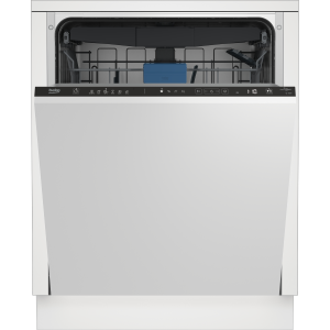 Beko BDIN37530: Lavastoviglie a Scomparsa Totale Classe D, 60 cm, 15 Coperti. Posizionamento dell'apparecchio: A scomparsa totale, Dimensione: Dimensione massima (60 cm), Colore pannello di controllo: Nero. Numero di coperti: 15 coperti, Classe emissione rumore: B, Emissione acustica: 44 dB. Classe efficienza energetica: D, Consumo di acqua per ciclo: 9,9 L, Consumo energetico per 100 cicli: 86 kWh. Larghezza: 598 mm, Profonditą: 550 mm, Altezza: 818 mm. Tecnologie Beko (lavaggio stoviglie): HygieneIntense, SteamGloss®